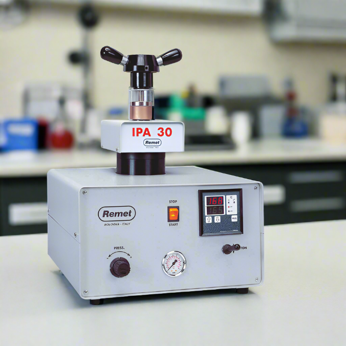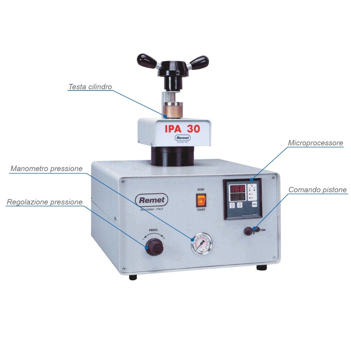 The IPA series automatic presses, with pneumatic operation, leave the operator with the sole task of positioning the sample and pouring the resin.