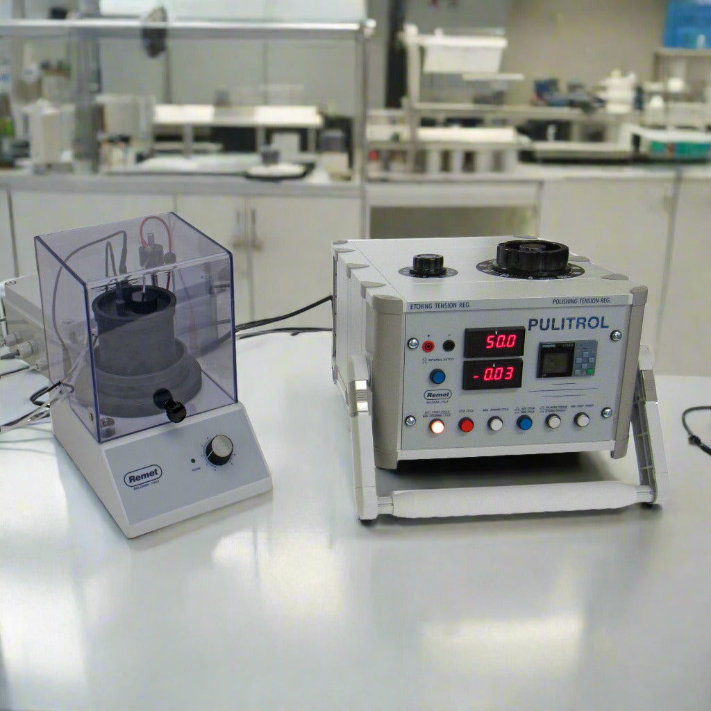 The electrolytic polisher facilitates the polishing and etching of soft or difficult to prepare samples with traditional methods (e.g. aluminum, stainless steel, copper, titanium). The PULITROL is available in benchtop and portable versions and consists of a power unit that manages the polishing and chemical etching cell. The power unit allows the control and display of the working parameters for both polishing and etching: VOLTAGE, CURRENT, TIME and ELECTROLYTE FLOW. PULITROL is supplied with a set of basic electrolytes.