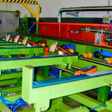 - Particolare automatismo scarico barre nel magazzino di uscita.