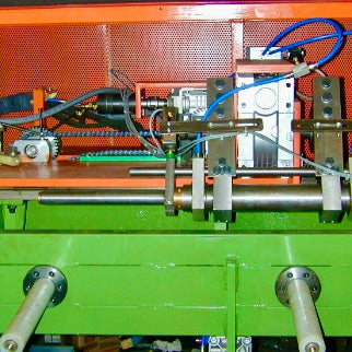 - Particolare dell’automatismo carico barre e spintore avanzamento barre.