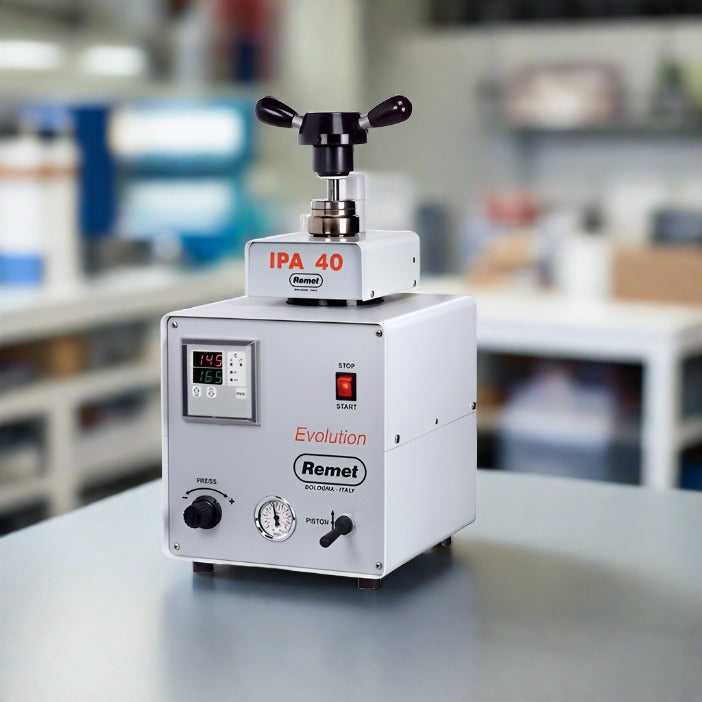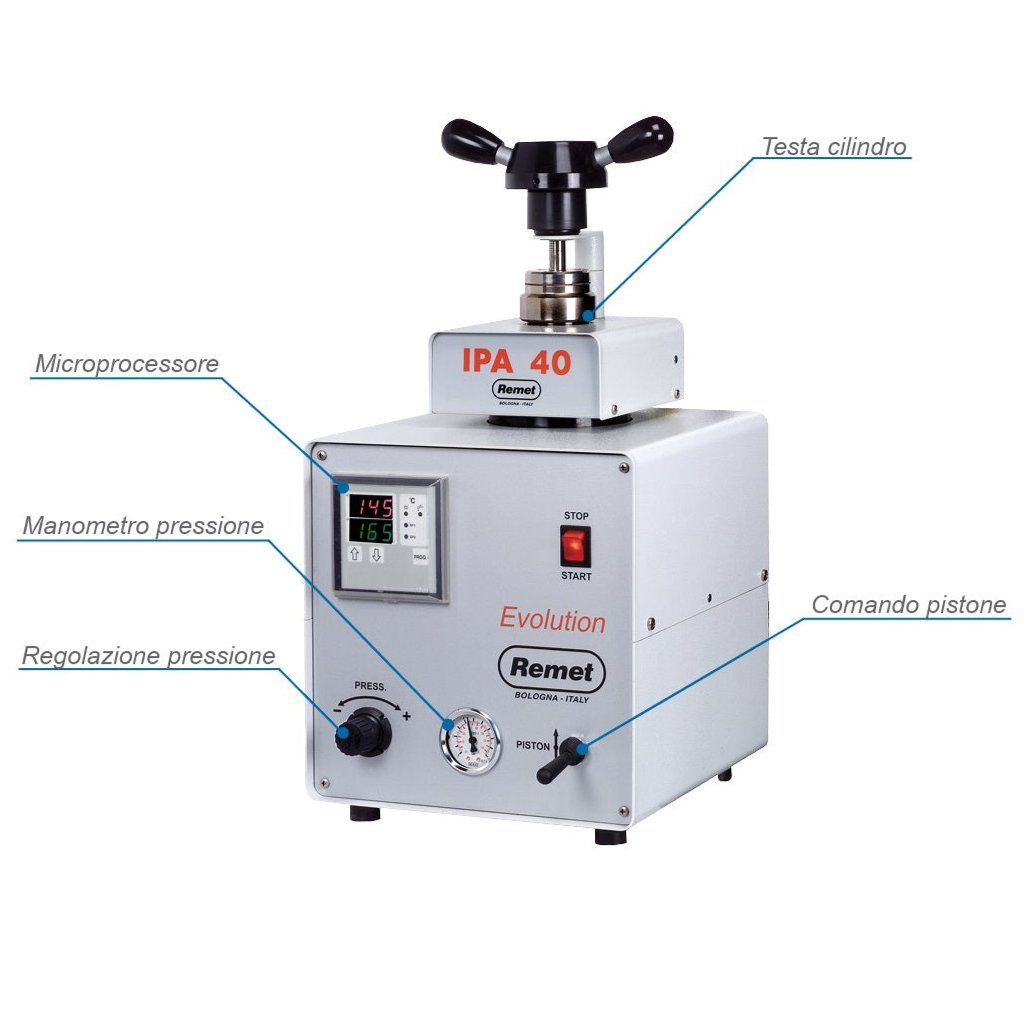 La presse inglobatrici della serie EVOLUTION sono macchine automatiche ad azionamento pneumatico con gestione del ciclo di lavoro mediante microprocessore facilmente programmabile.