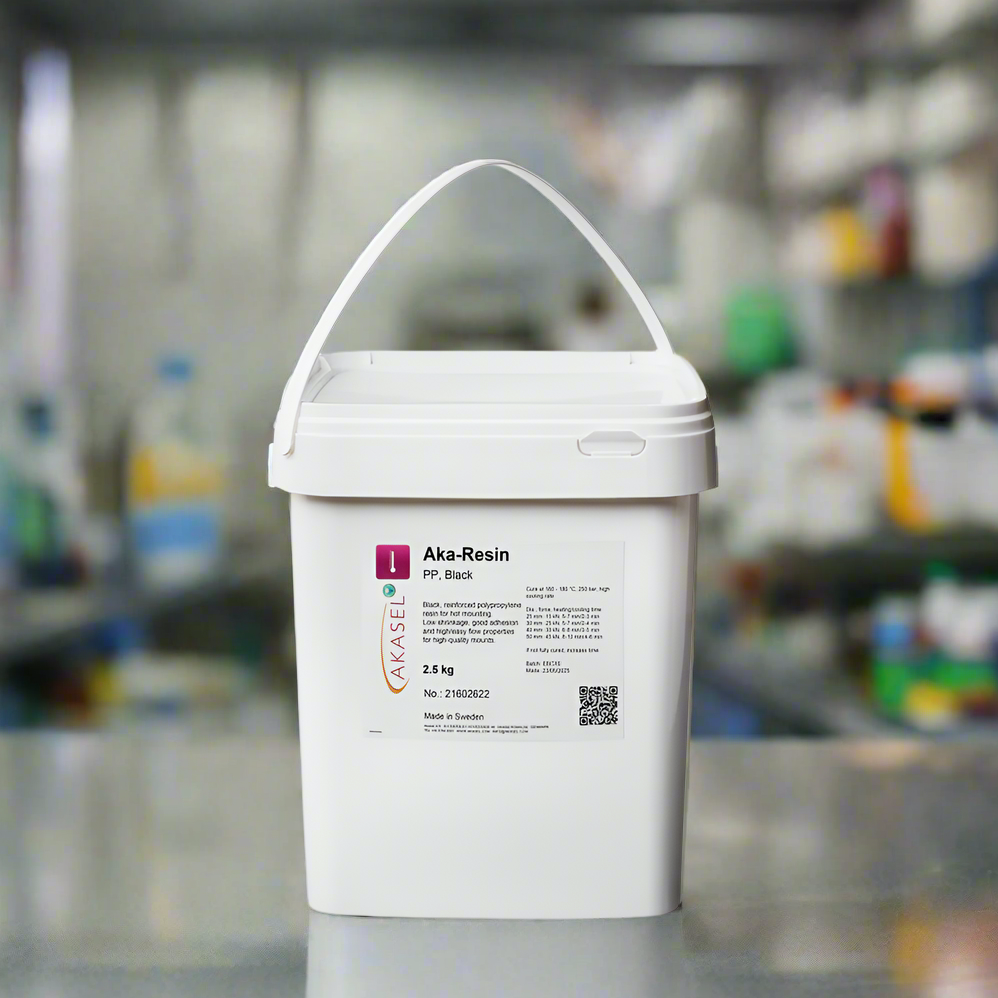 Resina polipropilenica colorata caricata con minerali per inglobamento a caldo. Aka-Resin PP è una resina priva di polvere con basso ritiro, buona adesione e proprietà di elevata/facile fluidità per inglobamenti di alta qualità.